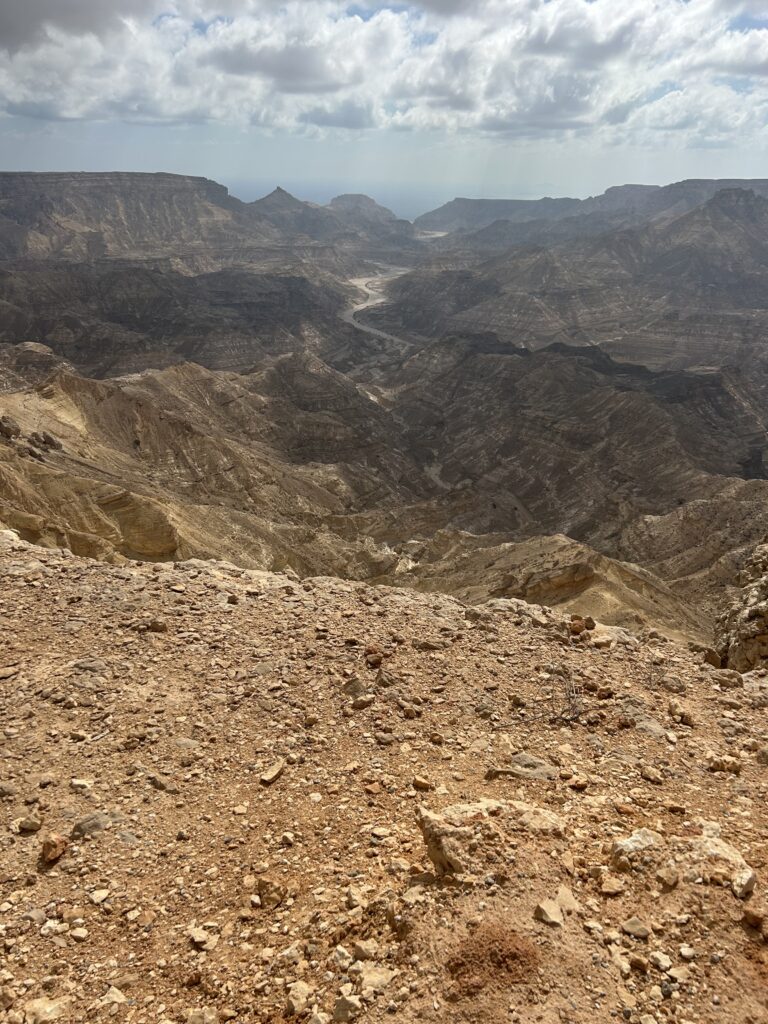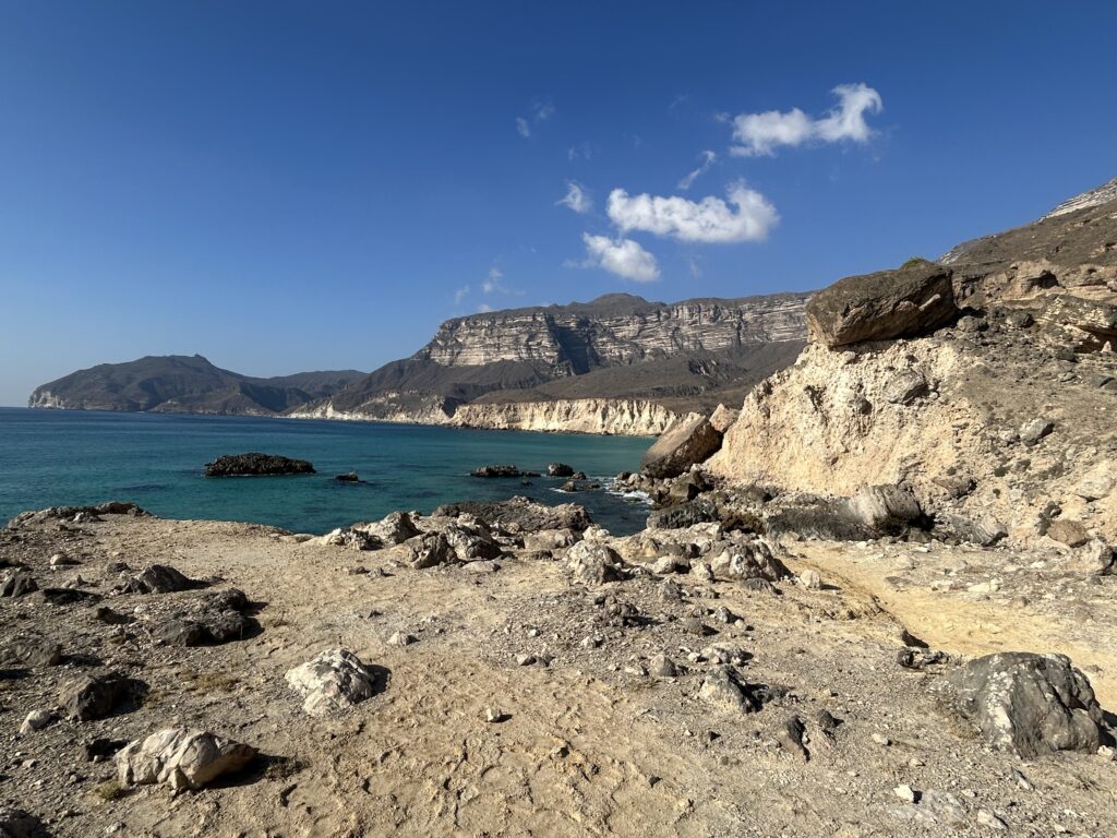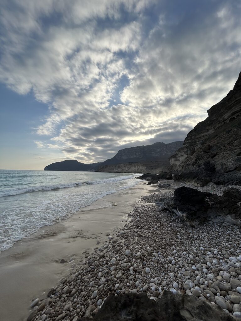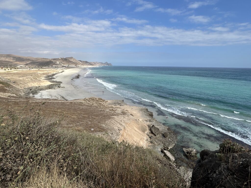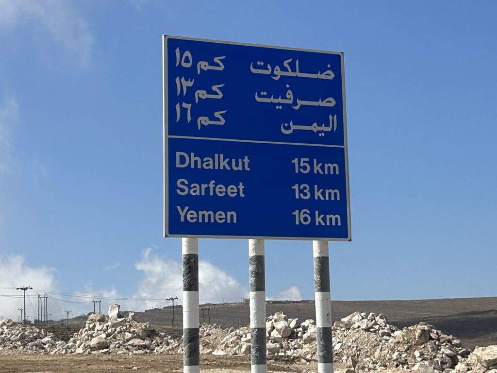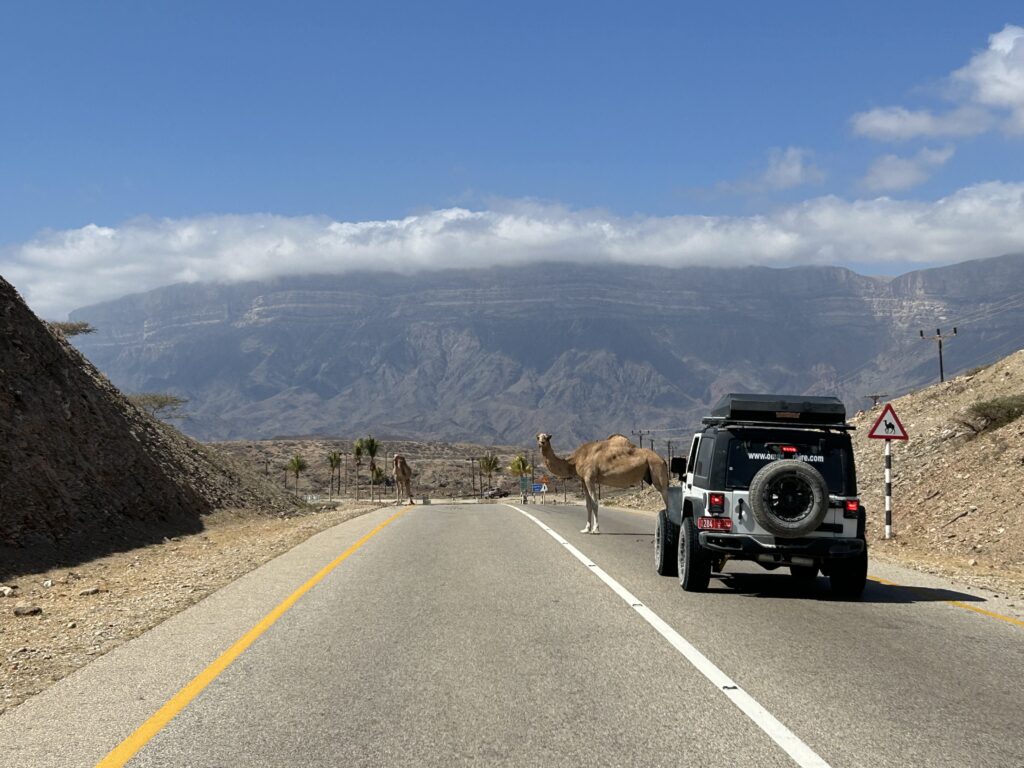 Ohne dass wir es merken, dass wir uns nun im Dhofargebiet befinden, spüren wir…. Hier tickts irgendwie etwas anders. Die Strände sind sauber gefegt und überall hat es Mülltonnen, die auch benutz werden. Der Abstecher ins Wadi Ash Shuwaymiyya fasziniert und riesig. Die canyonartige Schlucht, Berge die aussehen wie Meringues, die gepudert sind mit Milchschackolandenpulver, pilzähnliche Formationen und das saftige Grün der Palmen und Tropfsteine…. Es ist einfach fantastisch. Die zweite Nacht verbringen wir am Fusse des Jabal Samhan , dem höchsten Berg der Dhofar-Berge in einem Naturschutzgebiet. Das Nachtgebet sprach der Imam aus dem nahegelegenen Dorf und der arabische Wolf doppelte gleich nach. Ja, richtig. Als er uns dann morgens bei Sonnenaufgang nochmals sein Heulen darbot, waren wir uns sicher, denn den Wolf lebt in diesem uns diesem Gebiet noch. Zuerst Kuhherde, dann Kamele oder beides zusammen…. , das übliche Morgenritual, einfach perfekt. Unsere Fahrt dehnten wir aus ganz in den Westen, soweit es ging, an die Grenze von Yemen. Auf dieser Strecke passiert man auch alle paar km einen Militärposten-Checkpoint, denn der Handel zwischen Oman und Yemen wird dank des grossen Hafens von Salalah rege genutzt und stark kontrolliert. Die Landschaft einmal mehr beeindruckend. Riesige Kliffen fallen senkrecht über 500 m ins tosende arabische Meer. Kurze Abstecher an die Küste sind halt nicht so kurz wie sie scheinen, denn die Strecke führte uns auf top ausgebauten, teils neuen Strassenführungen durch gewaltige Schluchten an ein ruhiges kleines Fischerdorf. Und immer treffen wir auf sehr freundliche Menschen, die uns in ihrem Land willkommen heissen. In Salalah genossen wir mal wieder die Vorzüge des Citylebens gespickt mit arabischem Flair. Die zweitgrösste Stadt Omans mit seinen karibikähnlichen Stränden ist ein beschaulicher und sehr fruchtbarer Garten Eden. Im Schatten der riesigen Dattelpalmen gedeihen Papayas, Mangos, Bananen, Paprika und Gemüse aller Art. Die Gärten sind komplett integriert neben Sultans Palast, grosser Moschee, Weihrauchsouq und sehenswerten Museen. Ein herrlicher Ort einmal mehr mit sehr hilfsbereiten Locals, die besorgt um uns sind, wenn wir mal wieder in der grössten Hitze unseren Spaziergang machen. Zu Fuss durch die Gärten zu schlendern, im Strandcafé einen frischen Mangosaft zu geniessen und vor allem wieder einmal viele Menschen um uns zu haben, das ist halt auch spannend. Hier konnten wir auch unsere Auspuff-Aufhängung schweissen, hoffen wir jetzt nach dem zweiten Anlauf hält es bis Muscat. Nun zog es uns weiter über den Weihrauchgarten nordwestlich von Salalah auf in die Ödigkeit des Hinterlandes wieder gegen Norden. Wir sind überzeugt mit dem landschaftliche Juwel im Herzen wird uns selbst die boring rout, wie sie von allen beschrieben wird, gar nicht so öde erscheinen. Und siehe da, nach einer Nacht am Rande des „Leeren Viertel“ wie diese riesige Sand-Wüste hier genannt wird, die sich über Saudi-Arabien, Yemen und Oman erstreckt, tauchen bereits die ersten rötlich, gelben Sanddünen am Horizont auf. Da kommt alles andere als Langeweile auf! Ämu bestemmt ned bis Flury’s !!!!