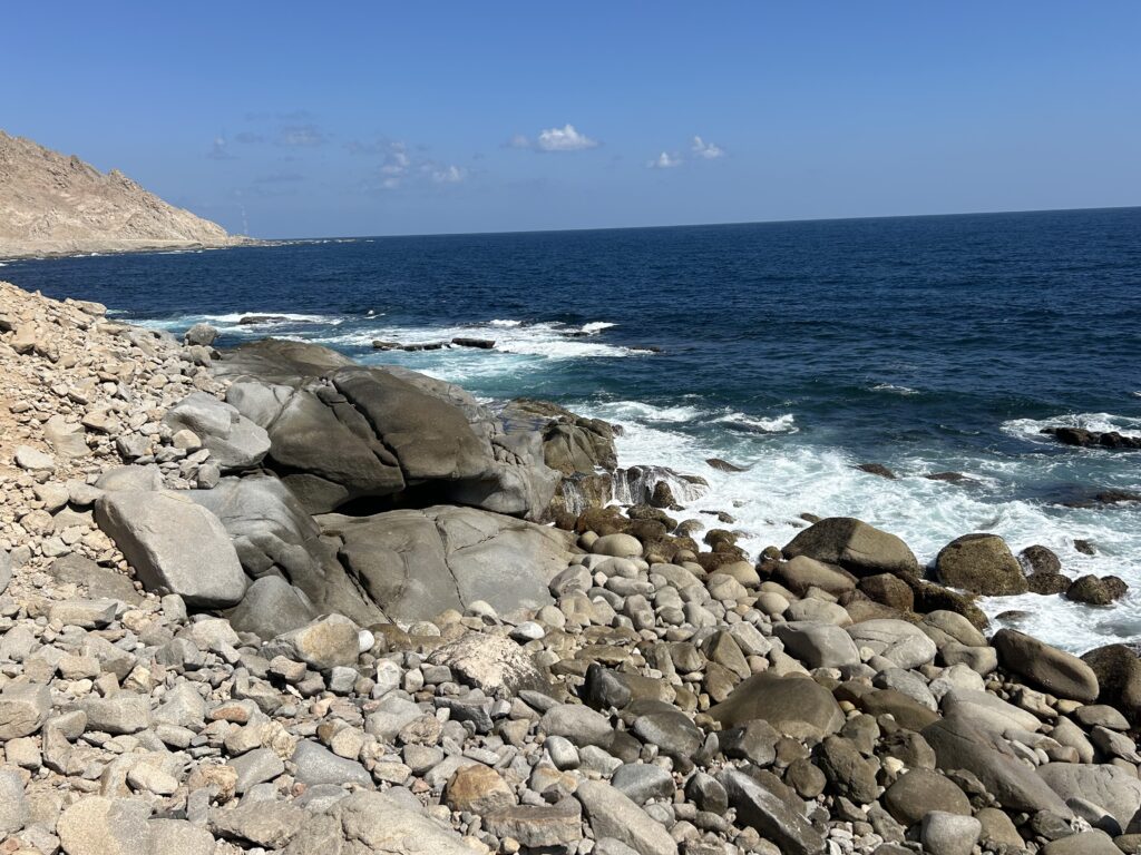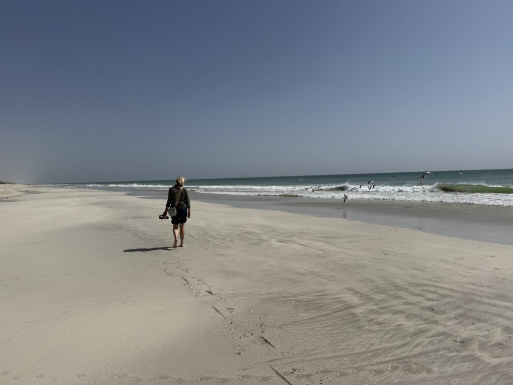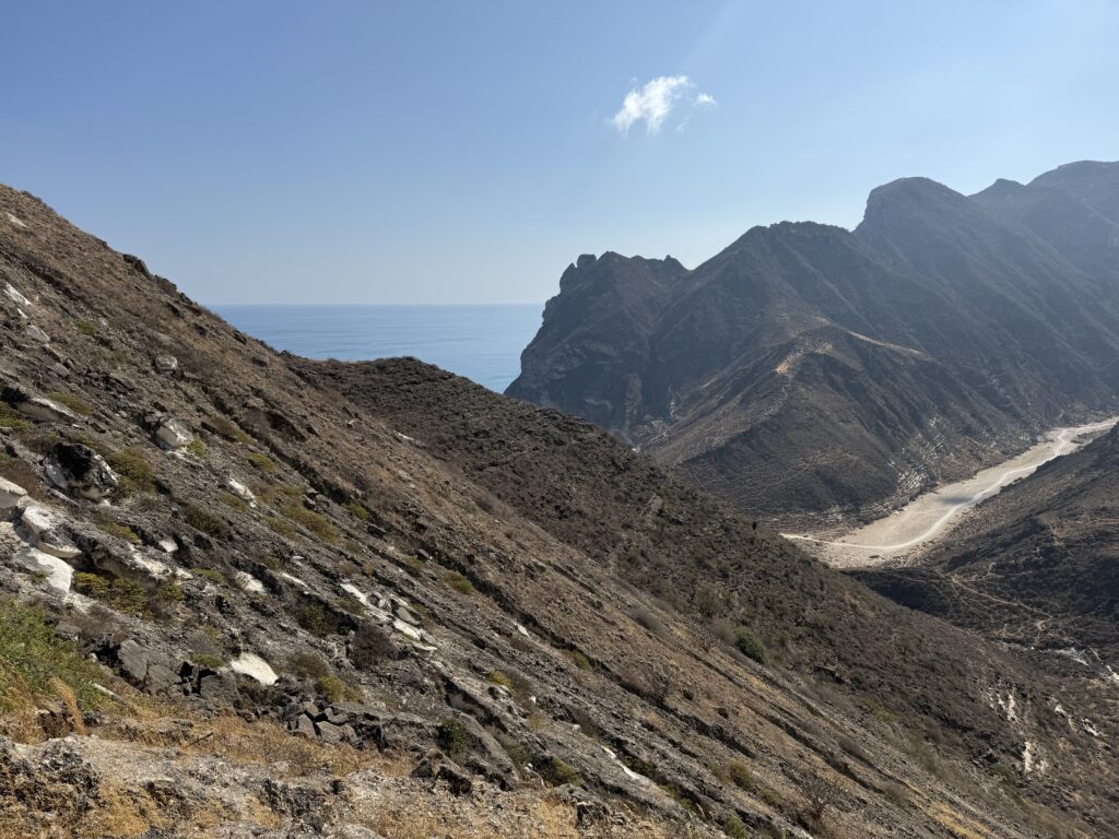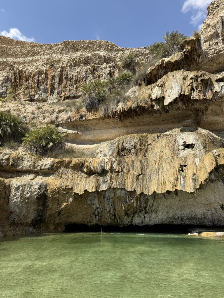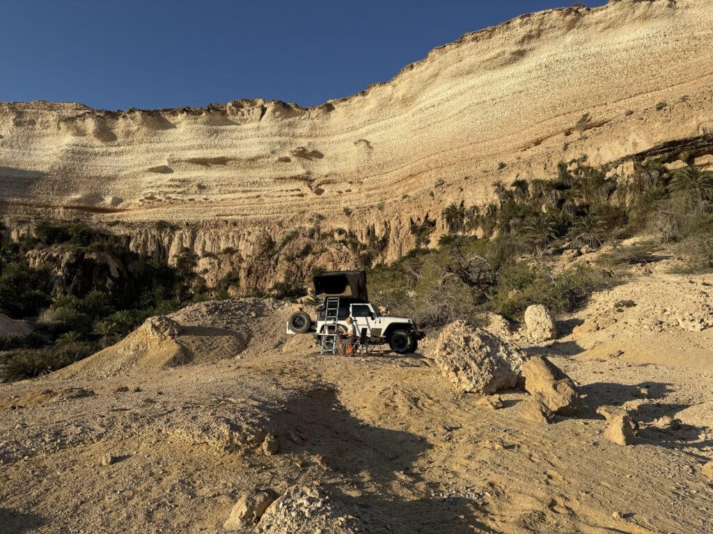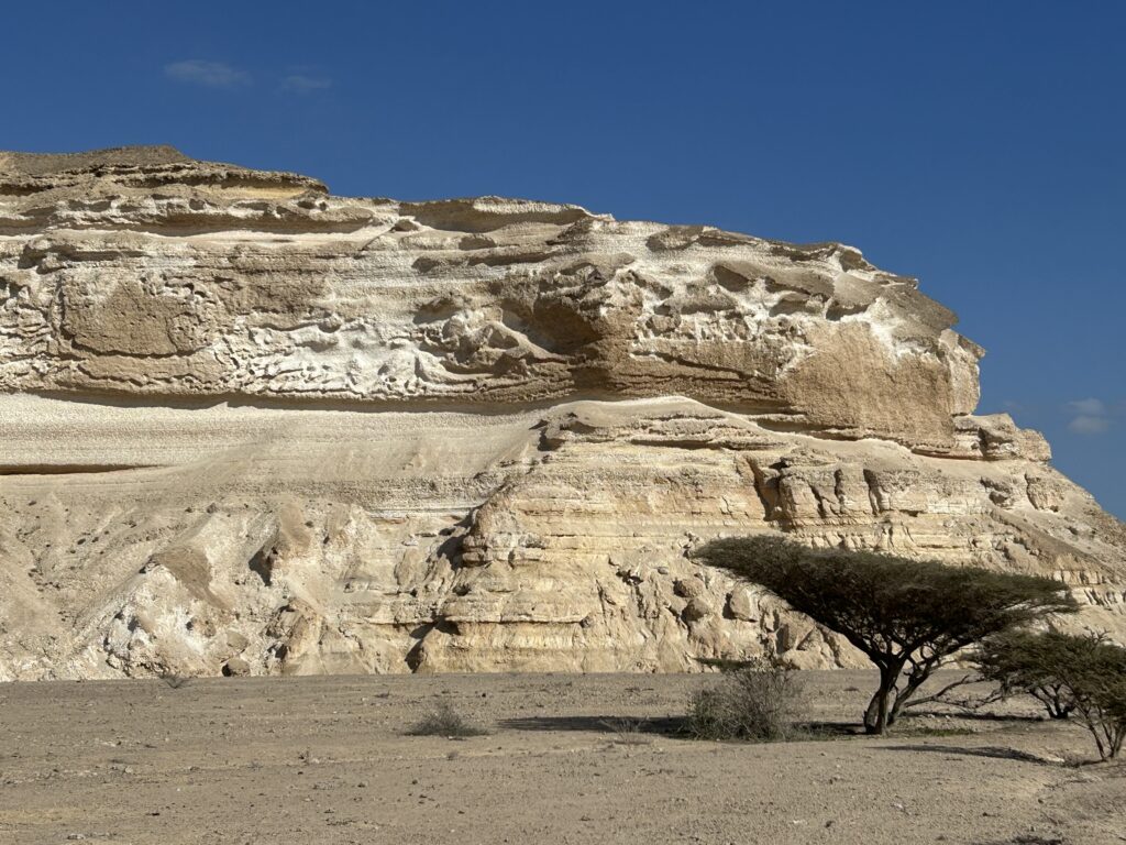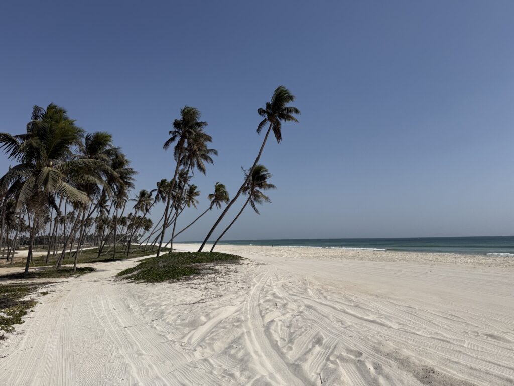 Ohne dass wir es merken, dass wir uns nun im Dhofargebiet befinden, spüren wir…. Hier tickts irgendwie etwas anders. Die Strände sind sauber gefegt und überall hat es Mülltonnen, die auch benutz werden. Der Abstecher ins Wadi Ash Shuwaymiyya fasziniert und riesig. Die canyonartige Schlucht, Berge die aussehen wie Meringues, die gepudert sind mit Milchschackolandenpulver, pilzähnliche Formationen und das saftige Grün der Palmen und Tropfsteine…. Es ist einfach fantastisch. Die zweite Nacht verbringen wir am Fusse des Jabal Samhan , dem höchsten Berg der Dhofar-Berge in einem Naturschutzgebiet. Das Nachtgebet sprach der Imam aus dem nahegelegenen Dorf und der arabische Wolf doppelte gleich nach. Ja, richtig. Als er uns dann morgens bei Sonnenaufgang nochmals sein Heulen darbot, waren wir uns sicher, denn den Wolf lebt in diesem uns diesem Gebiet noch. Zuerst Kuhherde, dann Kamele oder beides zusammen…. , das übliche Morgenritual, einfach perfekt. Unsere Fahrt dehnten wir aus ganz in den Westen, soweit es ging, an die Grenze von Yemen. Auf dieser Strecke passiert man auch alle paar km einen Militärposten-Checkpoint, denn der Handel zwischen Oman und Yemen wird dank des grossen Hafens von Salalah rege genutzt und stark kontrolliert. Die Landschaft einmal mehr beeindruckend. Riesige Kliffen fallen senkrecht über 500 m ins tosende arabische Meer. Kurze Abstecher an die Küste sind halt nicht so kurz wie sie scheinen, denn die Strecke führte uns auf top ausgebauten, teils neuen Strassenführungen durch gewaltige Schluchten an ein ruhiges kleines Fischerdorf. Und immer treffen wir auf sehr freundliche Menschen, die uns in ihrem Land willkommen heissen. In Salalah genossen wir mal wieder die Vorzüge des Citylebens gespickt mit arabischem Flair. Die zweitgrösste Stadt Omans mit seinen karibikähnlichen Stränden ist ein beschaulicher und sehr fruchtbarer Garten Eden. Im Schatten der riesigen Dattelpalmen gedeihen Papayas, Mangos, Bananen, Paprika und Gemüse aller Art. Die Gärten sind komplett integriert neben Sultans Palast, grosser Moschee, Weihrauchsouq und sehenswerten Museen. Ein herrlicher Ort einmal mehr mit sehr hilfsbereiten Locals, die besorgt um uns sind, wenn wir mal wieder in der grössten Hitze unseren Spaziergang machen. Zu Fuss durch die Gärten zu schlendern, im Strandcafé einen frischen Mangosaft zu geniessen und vor allem wieder einmal viele Menschen um uns zu haben, das ist halt auch spannend. Hier konnten wir auch unsere Auspuff-Aufhängung schweissen, hoffen wir jetzt nach dem zweiten Anlauf hält es bis Muscat. Nun zog es uns weiter über den Weihrauchgarten nordwestlich von Salalah auf in die Ödigkeit des Hinterlandes wieder gegen Norden. Wir sind überzeugt mit dem landschaftliche Juwel im Herzen wird uns selbst die boring rout, wie sie von allen beschrieben wird, gar nicht so öde erscheinen. Und siehe da, nach einer Nacht am Rande des „Leeren Viertel“ wie diese riesige Sand-Wüste hier genannt wird, die sich über Saudi-Arabien, Yemen und Oman erstreckt, tauchen bereits die ersten rötlich, gelben Sanddünen am Horizont auf. Da kommt alles andere als Langeweile auf! Ämu bestemmt ned bis Flury’s !!!!