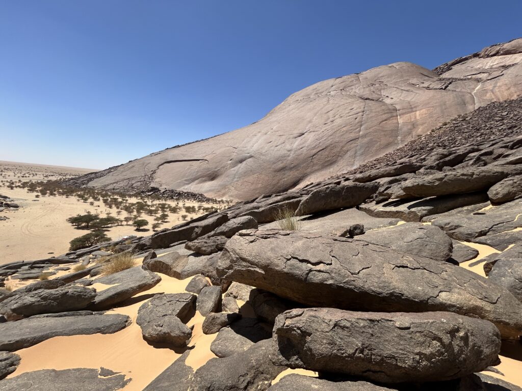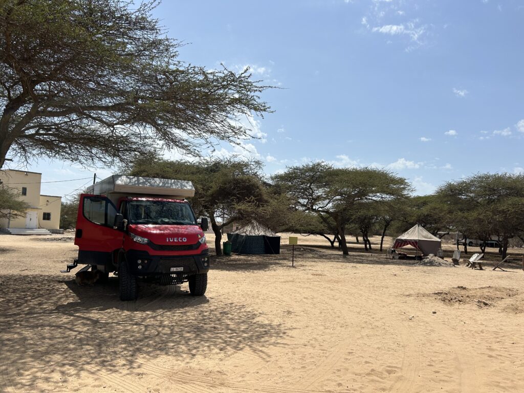 Die Ausreise aus Marokko verlief früh morgens recht zackig. bushcruiser musste durch den Scanner und wir drei wurden durchgewunken. Auf der mauretanischen Seite gings dann so richtig los mit der Stepelei, Roadtax, Visa und E-Visa, Versicherung fürs Fahrzeug und natürlich das Wichtigste Money-Change. Doch alles in allem konnten wir uns glücklich schätzen, denn wir waren in knapp vier Stunden durch. Nicht schlecht, yähh. Alles ist etwas chaotischer hier in Mauretanien. Die Autos definitiv noch etwas älter, der Abfallberg ist leider noch etwas grösser und das System muss man nicht wirklich verstehen. Ja, wir sind tatsächlich in Africa angekommen 😉Und auf gings auf die lange Route du Train Richtung Osten. Diese 450 km lange Sandpiste führt der bekannten Eisenerz-Bahnlinie an der Grenze zu Westsahara entlang. Wow, vier unvergessliche Tage. Wir und dieser 2.5 – 3 km langen Zug, der sicher einmal täglich am Horizont auftaucht schlossen geradezu eine fiktive Freundschaft. Das Tuckern dieses Zuges, den man schon hört bevor man ihn sieht in dieser unglaublichen Landschaft beeindruckte uns sehr. Entweder man liebt die Wüste oder man hasst sie. Wir gehören definitiv zu den ersteren 😉. Der Ben Amira, der zweitgrösste Monolithen nach dem Ayers Rock, war für uns dann nochmals ein Highlight und die Besteigung bei knapp 40 Grad schon fast eine Meisterleistung. In Atar bei Leonie genossen wir ihren schönen schattigen Garten samt herrlicher Dusche. Ihren Camping führt sie seit dem Tod ihres Mannes vor 1 Jahr alleine. Eine wunderschöne Oase inmitten der Wüste und Treffpunkt der Travellers. Es wäre ein guter Ausgangspunkt, um von hier aus noch einige Saharatouren zu unternehmen. Da es aber leider zu unserem Zeitpunkt keine anderen Reisende hatte, verzichten wir darauf, denn nur mit einem Fahrzeug war es uns definitiv zu gefährlich. Also next time 😉, dies haben wir uns versprochen! So ging es zügig nach Nouakchott, der Hautstadt Mauretaniens. Mhhh, wir waren schon etwas geschockt. Der Strassenzustand, die vielen Kinder, kein Hauptplatz, den man in einer Hauptstadt erwarten würde oder ein Unabhängigkeis-Wahrzeichen… Das einzige huge-grosse Gebäude war natürlich mal wieder die US-Botschaft und nicht zu übersehen. Die Schweiz hat übrigens keine Vertretung in diesem Land. Mit ein Grund, dass die Schweiz von Reisen nach Mauretanien abrät. Nach unserer Einschätzung ist das Reisen in Mauretanien aber absolut unproblematisch, wenn man von den Grenzgebieten nach Algerien und Mali absieht. Und so zog es uns südwärts in den Parc National du Diawing direkt an der Grenze zu Senegal, wo wir uns in ein neues Abenteuer stürzten. Yähh, aufgeht‘s auf 7 Rädern.