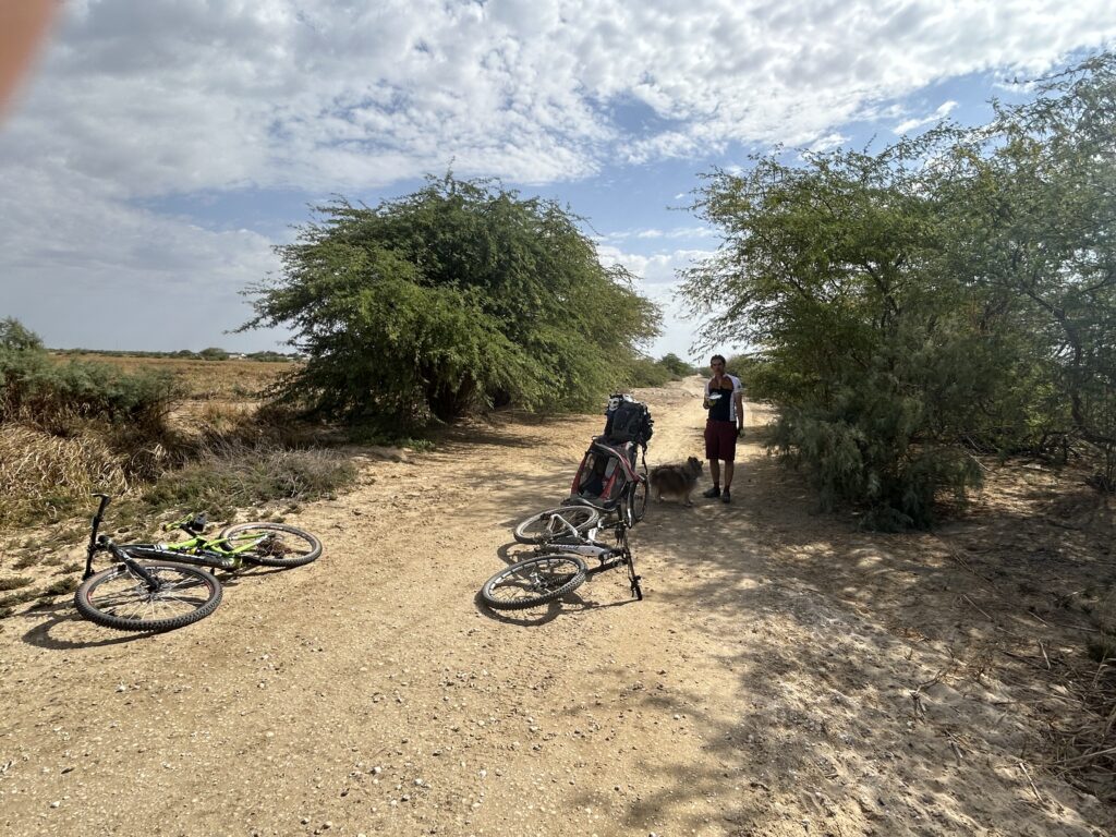 Im hintersten Ecken in unseren beiden Herzen hegten wir seit inzwischen bald 3 Jahrzehnten einen Traum, einmal in unserem Leben in der Zebrabar in Senegal auf dem Aussichtsturm zustehen und auf den Atlantik mit seiner vorgelagerten Lagune zuschweifen. Den ganzen „paperkrieg“ am Zoll mit temporary Einfuhr des Fahrzeuges (wir haben kein Carnet de passage), Strassengebühren und dann noch Abstempeln in Dakar… dieser Aufwand war uns einfach für einen „Kurzaufenthalt“ zu teuer und aufwendig. – LEBE DEINEN TRAUM – wir satteln unsere Bikes samt Anhänger und aufging‘s nach Senegal 🥰. Die knapp 70 km lange Route führte uns zur Hälfte der Strecke auf Gravel- und Sandpisten und durch die City Saint-Louis. Die Grenzformalitäten waren mit dem Fahrrad absolut easy und wir erlebten Africa auf eine ganz neue Art. Gerüche, Gedränge, Gehupe, fröhliche Menschen, laute Musik und ein riesiges Chaos ohne Blechkiste um uns herum, dies ist nochmals ein ganz anderes Eintauchen. Und das bei 38 – 42 Grad Wärme forderte einiges an Mensch, Hund und Material 😅😅😅. Aber das kleine Paradies Zebrabar am Rande des Parc Nacional de la Langue de Barbarie war die Oase der Erholung. Ein wunderschöner Ort auf Erden, wo sich Reisende ob mit Velo, Motorrad, Reisefahrzeug, Autoschlepper, Hilfsorganisationen oder Botschafter, die im Land leben oder arbeiten treffen oder die Ostertage verbringen. Spannende und unglaubliche vielfältige Geschichten von Menschen, die eines gemeinsam haben, nämlich die Liebe und Leidenschaft zu Africa. Wir haben es riesig genossen und unseren Traum vollumfänglich gelebt 💜.