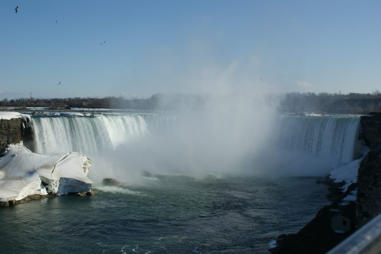 Weiter ging’s dem St. Lorenzstrom nach zum Lake Ontario. Wir staunten nicht schlecht, dass auch noch im März der Fluss teilweise komplett zugefroren war. Bei den meisten Sehenswürdigkeiten und Plätzen „on the road“ standen wir vor verschlossen Türen: „Sorry, it’s clost for seasen“. Also ging’s zügig weiter, vorbei an einsamen und ruhigen Plätzen am Ontario-See über Toronto, Burlington zu den Niagara-Falls. Und wenn sie noch so umrummelt werden mit allem was Amerika zu bieten hat (Casino, Vergnügungspark, Lasershows), sind sie doch absolut sehenswert. Besonders eindrücklich war für uns, die Fälle in einer Jahreszeit zu sehen, wo es ausser viel Wasser auch noch jede Menge Eisschollen, zu bewundern gab. Besonders für Alessandra war das Nachtspecktakel mit den Lichtspielen ein grosses Erlebnis, die die Fälle in einen märchenhaften Schleier verwandeln liessen! Schon in Canada hatten wir einen Market der Amish besucht. Die Amish sind ein Folk ursprünglicher Abstammung aus der Schweiz und Deutschland, die noch wie zu alten Zeiten ohne Elektrizität leben und ihre Höfe mit Ross und Pflug bewirtschaften. In dieser Region sieht man sie mit ihren schwarzen Pferdekutschen, denn das Auto dürfen sie nur in Notfällen benutzten. Da sich ihr Ursprung in Philadelphia, im Norden der USA befindet, verbrachten wir in einem Gästehaus der Amish einen interessanten Tag. Nach diesen Erlebnissen rückte Baltimore immer näher.