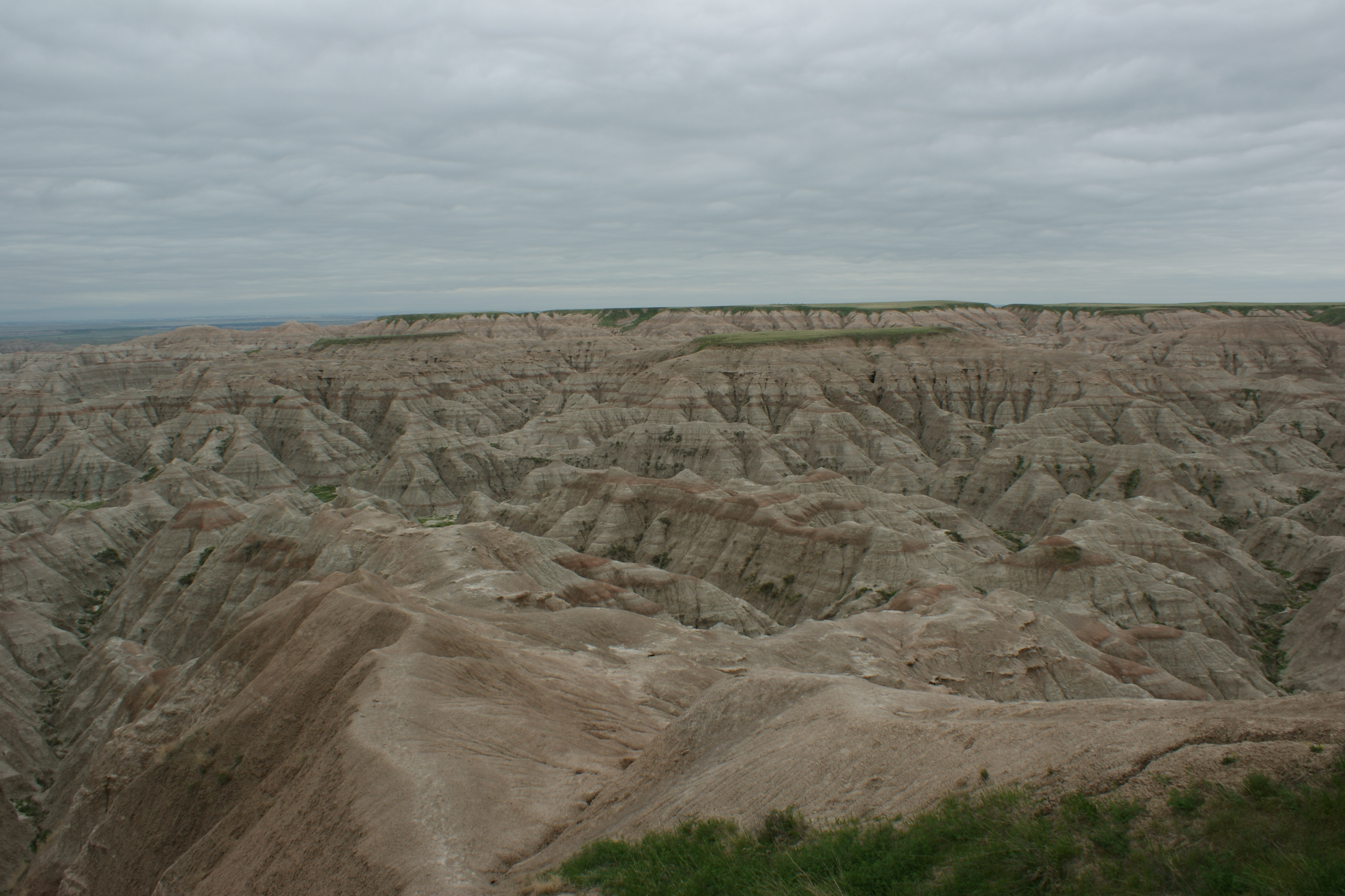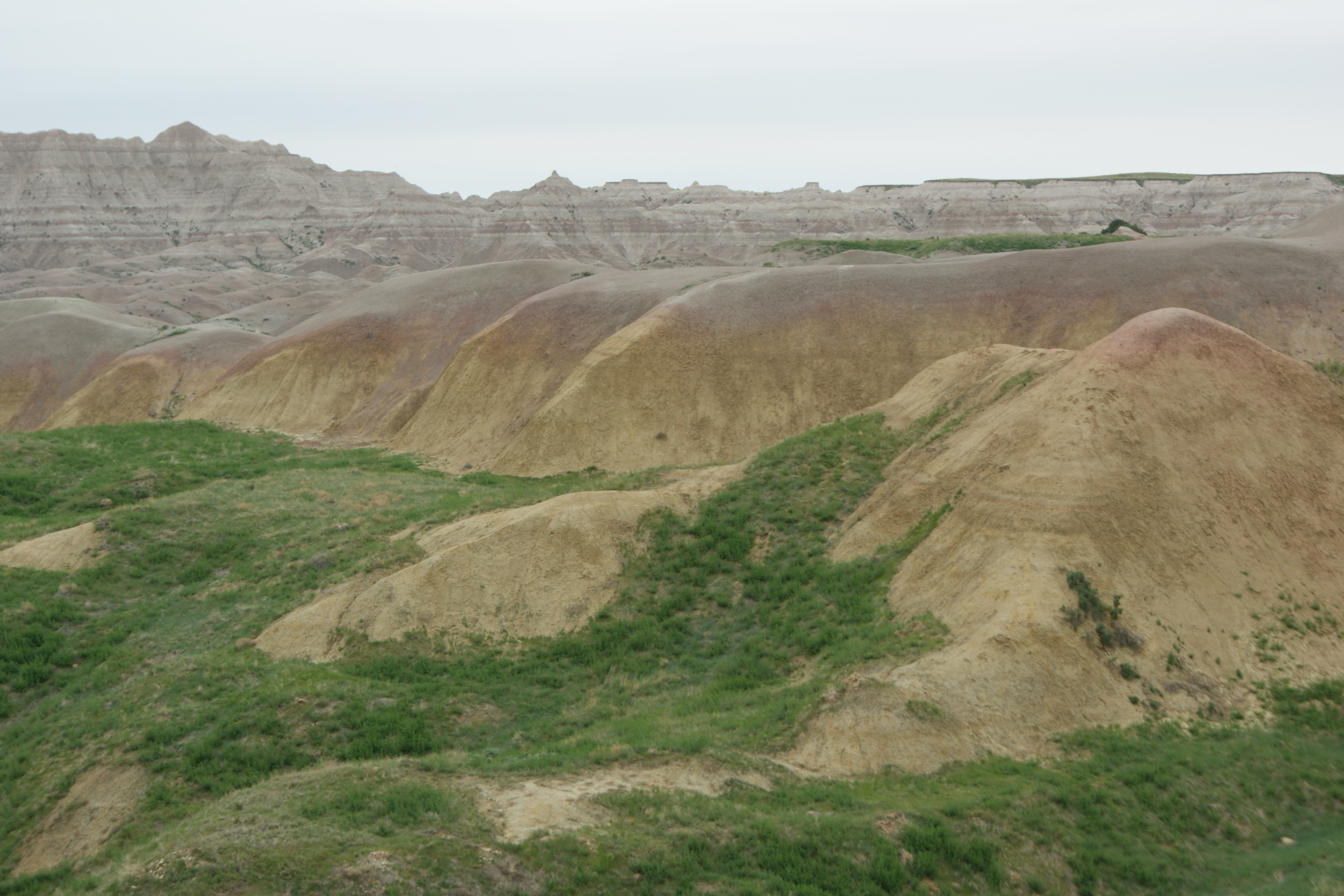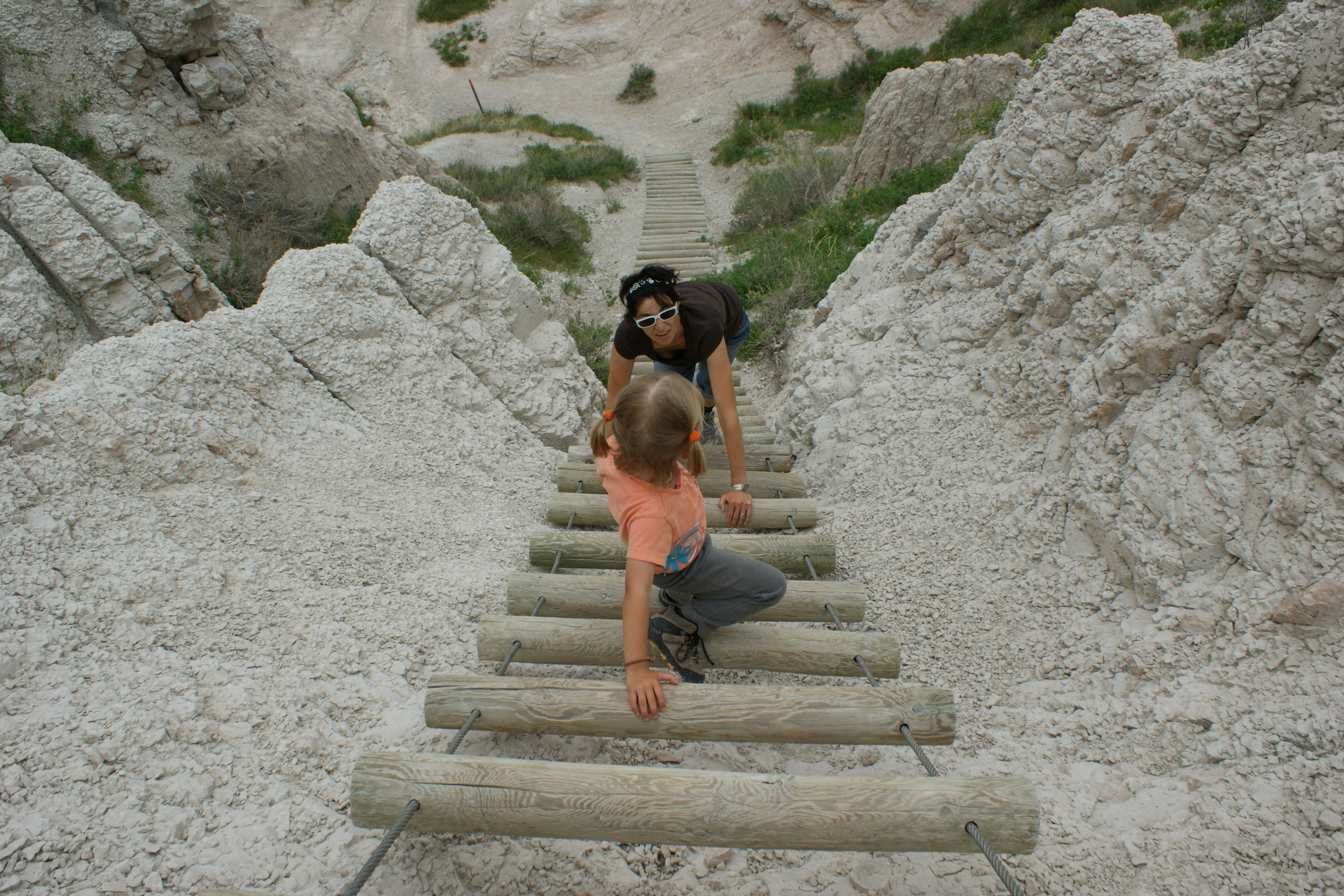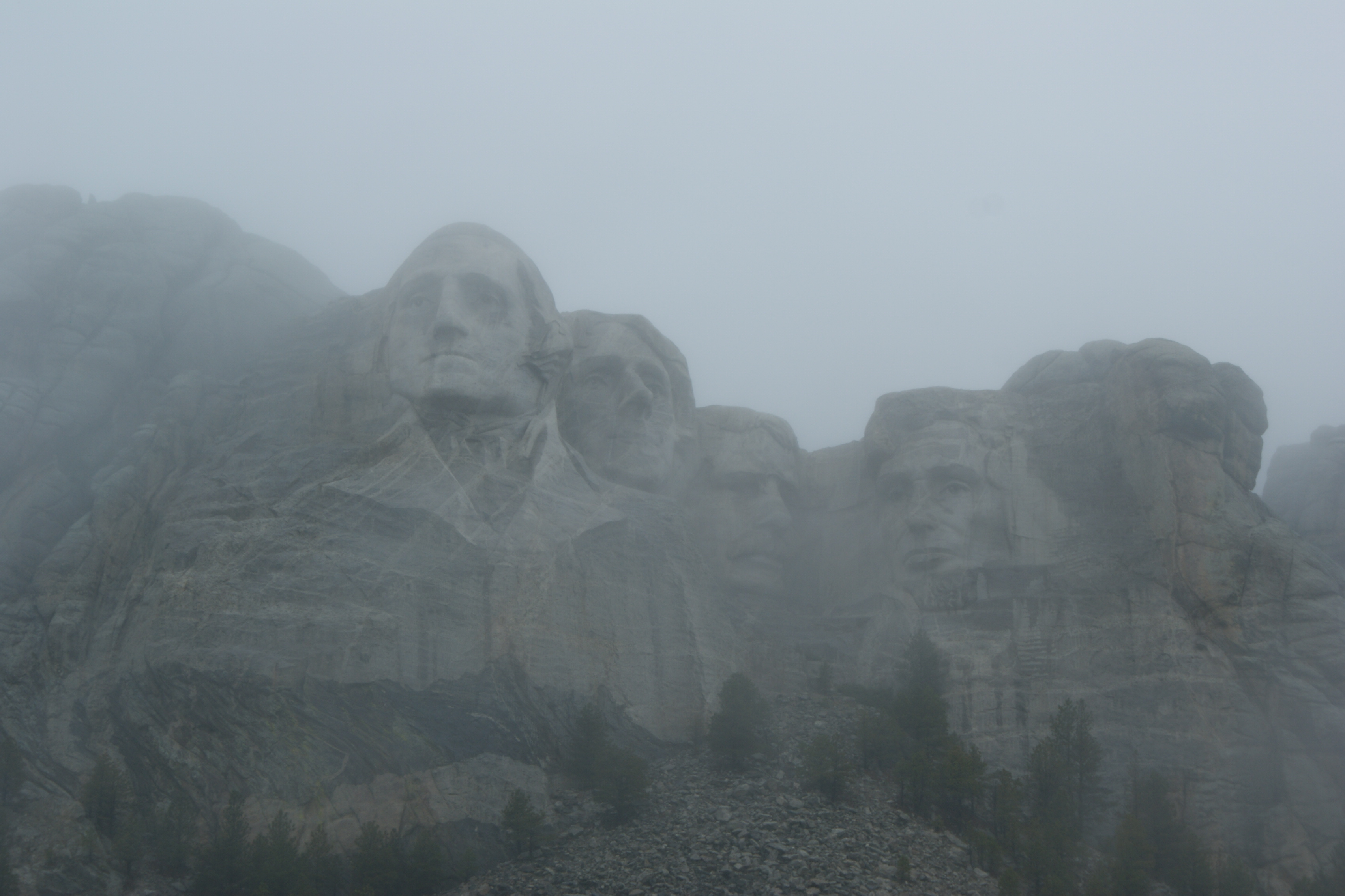 Aber die geschnitzten Köpfe im Felsen der vier Präsidenten ist ja fast ein „Muss“ eines jeden Amerikaners. Also zählen wir uns auch schon fast dazu ? Nein, alleine die Sehenswürdigkeit des Mt. Rushmore würden einen solchen Abstecher sicher nicht lohnen, würden da nicht auch noch die wunderschönen Badlands liegen. Die Badlands eine karge, durch Erosion entstandene Landschaften zerklüfteter Sandsteinformationen inmitten des flachen South Dakotas. Die abgeschliffenen Felsen luden für wunderschöne Wanderungen ein. Das Tragische an diesem Nationalpark ist einmal mehr wieder, dass auch dieser Landteil den Indianern zugesichert wurde, wo sie noch intensiv ihre traditionellen Feste feierten. Bis dann kurzerhand ein Nationalpark daraus gemacht wurde, was die Indianer zwang, wieder aus ihrer „Heimat“ zu flüchten. So fragten wir uns, warum wurde Mt. Rushmore ausgerechnet in einem Indian Country erstellt ? Dies konnte uns keiner so genau sagen. Es ist halt einfach eine Attraktion mehr, das Touristen bringt, war die plausibelste Antwort. Die vier Präsidenten (Washington, Jefferson, Lincoln und Roosevelt) blicken sehr beherrschend über die Weite des Landes. Es ist wirklich eine grandiose Meisterleistung. Und wir waren überglücklich, dass sie sich doch noch für knappe 2 Minuten aus dem Nebel zeigten, denn an diesem Tag war das ganze Tal total verhangen. Weiter gings zum Teufelstower, dem Devils Tower National Monument, bereits in Wyoming. Ein riesiger abgeplatteter Klotz aus Säulenbasalt, der sich schon von weitem zeigt, mit seiner 270 m Höhe. Auch hier genossen wir nochmals eine herrlich Wanderung rund um dem Vulcanic Plug, bevor wir uns aufmachten Richtung Yellowstone-Nationalpark.